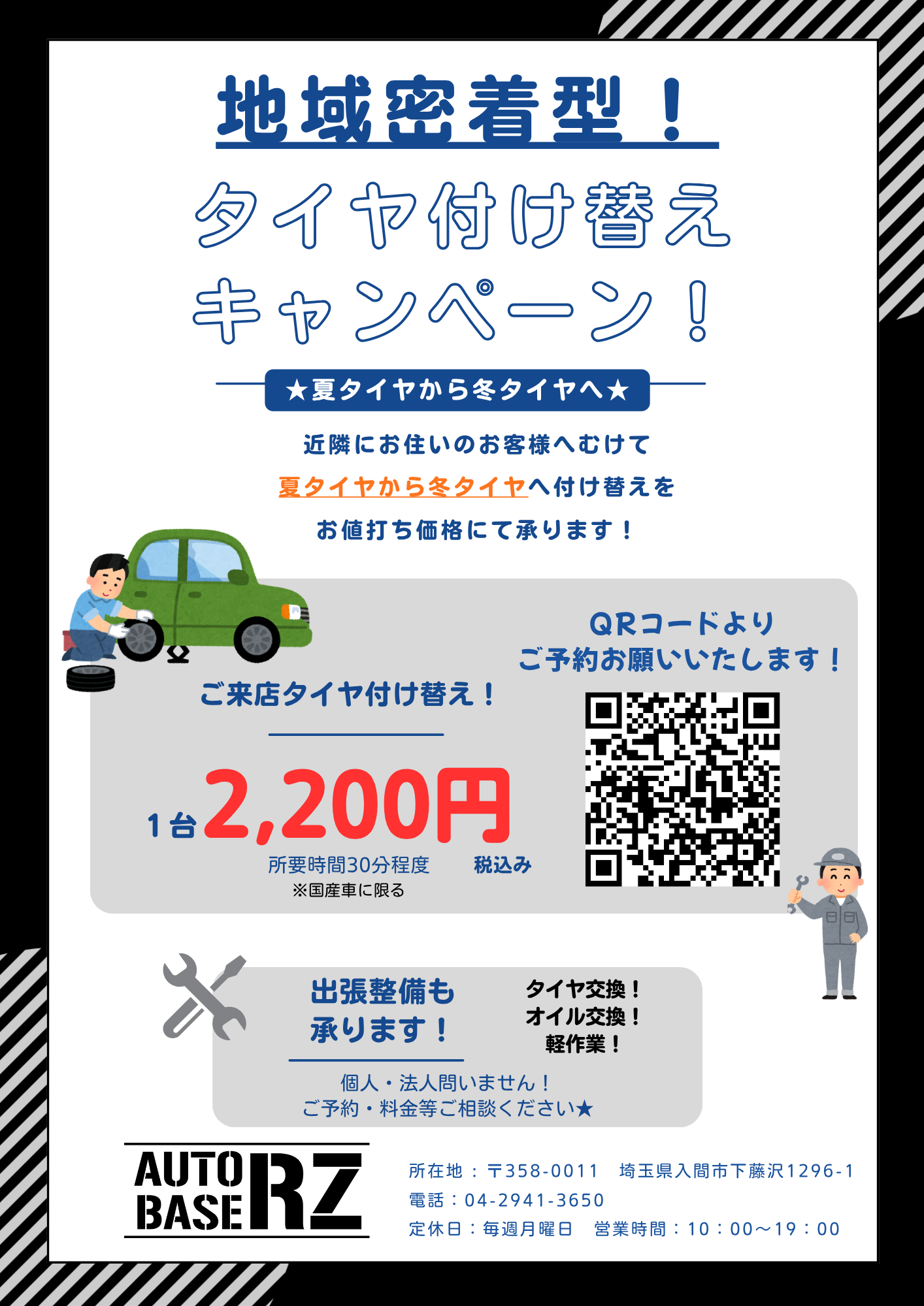 当店では夏タイヤから冬タイヤへの履き替えを一律2,200円にて承っております!